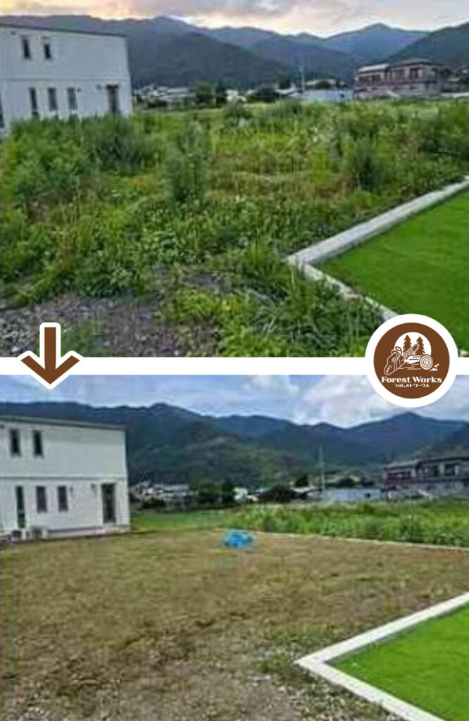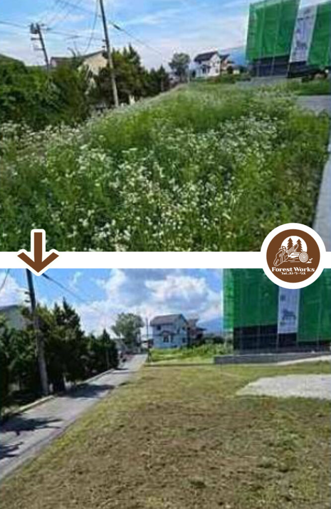 地元のカトリホーム様より住宅土地2区画分の除草を依頼をいただきました。大変キレイになったと喜んでいただけました。